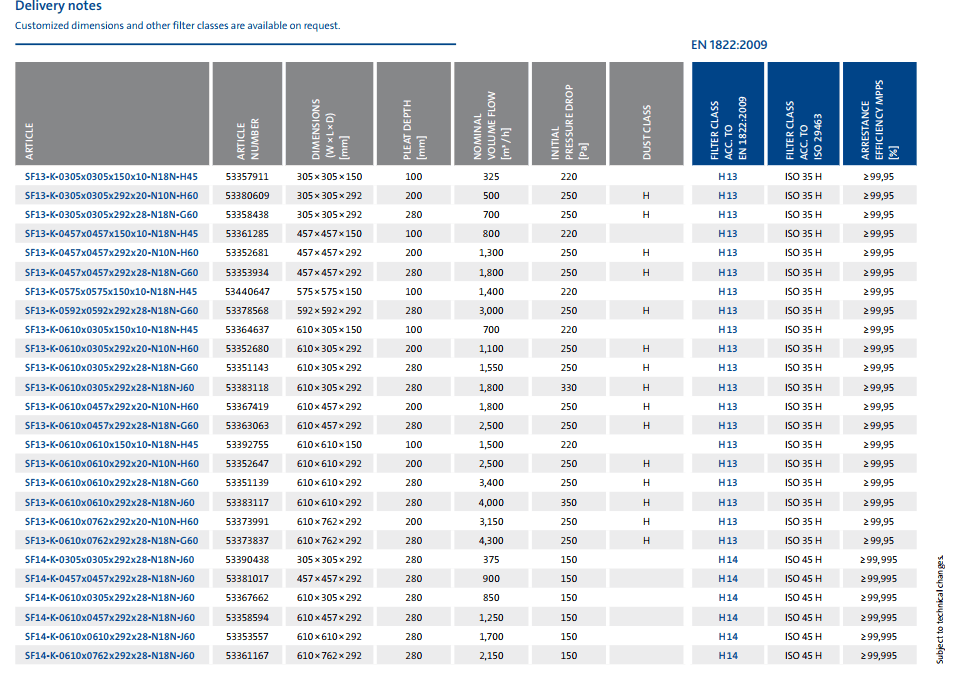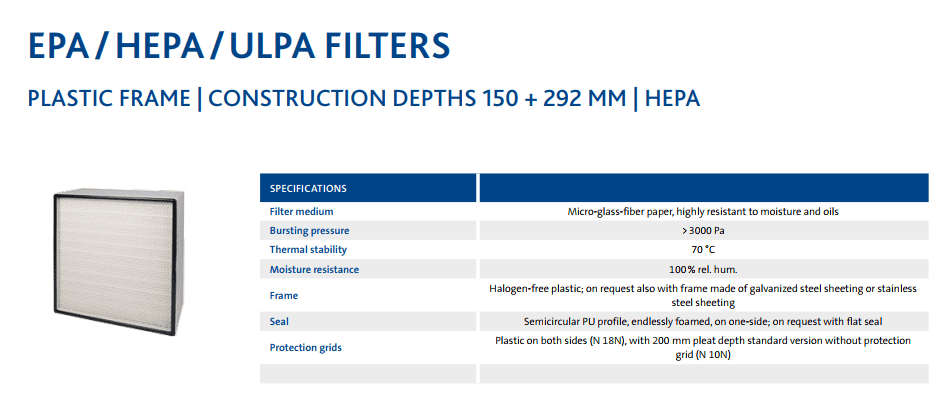 Lọc HEPA cho Phòng Sạch (Clean room) với hiệu suất H13/H14 lên đến 99,95% đến 99,995% chuyên dùng cho lĩnh vực dược phẩm, bệnh viện, điện tử, thực phẩm,.....để đánh giá tiêu chuẩn GMPs/ EU, ....